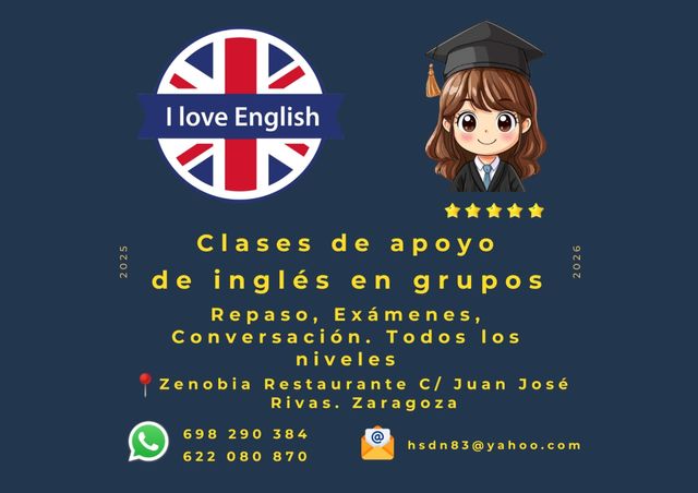 Repaso, exámenes, conversación. Todos los niveles. Lugar: Zenobia restaurante. Calle Juan José Rivas. Zaragoza