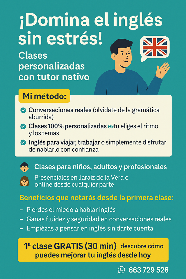Detalles del producto¡Domina el inglés sin estrés! Clases personalizadas!