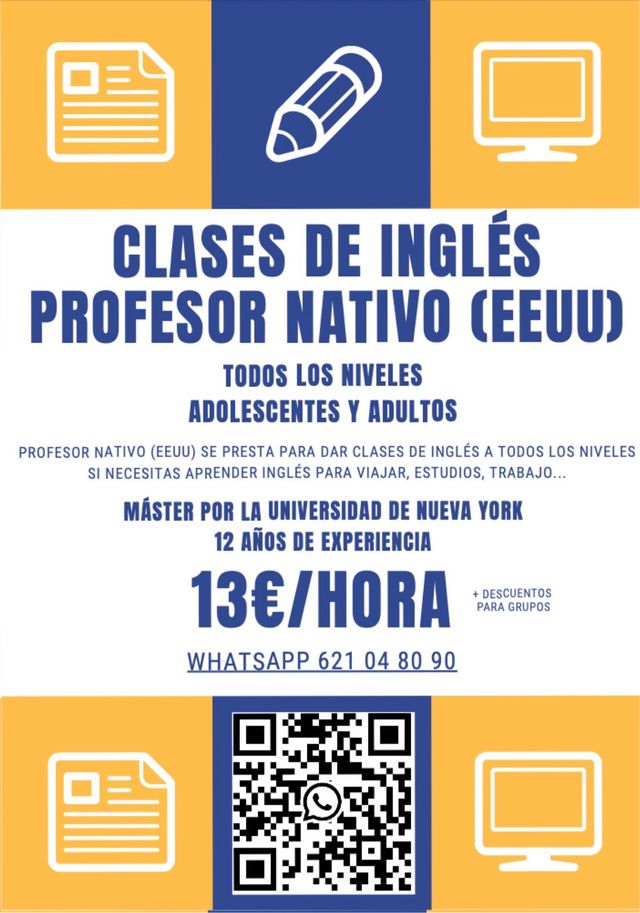 Profesor nativo se presenta para dar clases en línea o presencialmente