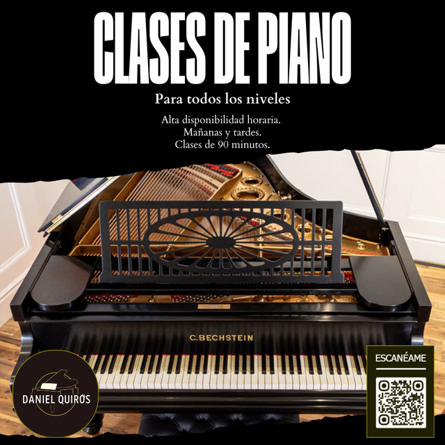 Detalles del productoSoy Daniel Quirós, pianista, locutor de RTVE, conferenciante y profesor de piano. Si buscas una persona con la que aprender rápidamente, asentar las bases del instrumento y disfrutar con la música, soy tu profesor. 15 años de experiencia y decenas de alumnos me avalan.