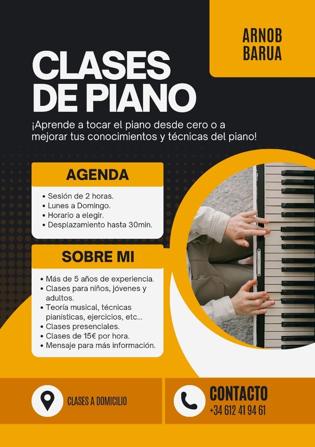 Detalles del productoSoy pianista con más de 5 años de experiencia tocando y varios meses enseñando a principiantes. Ofrezco un método adaptado a cada alumno, para que aprendas de forma efectiva, sin necesidad de conocimientos previos. 🎹