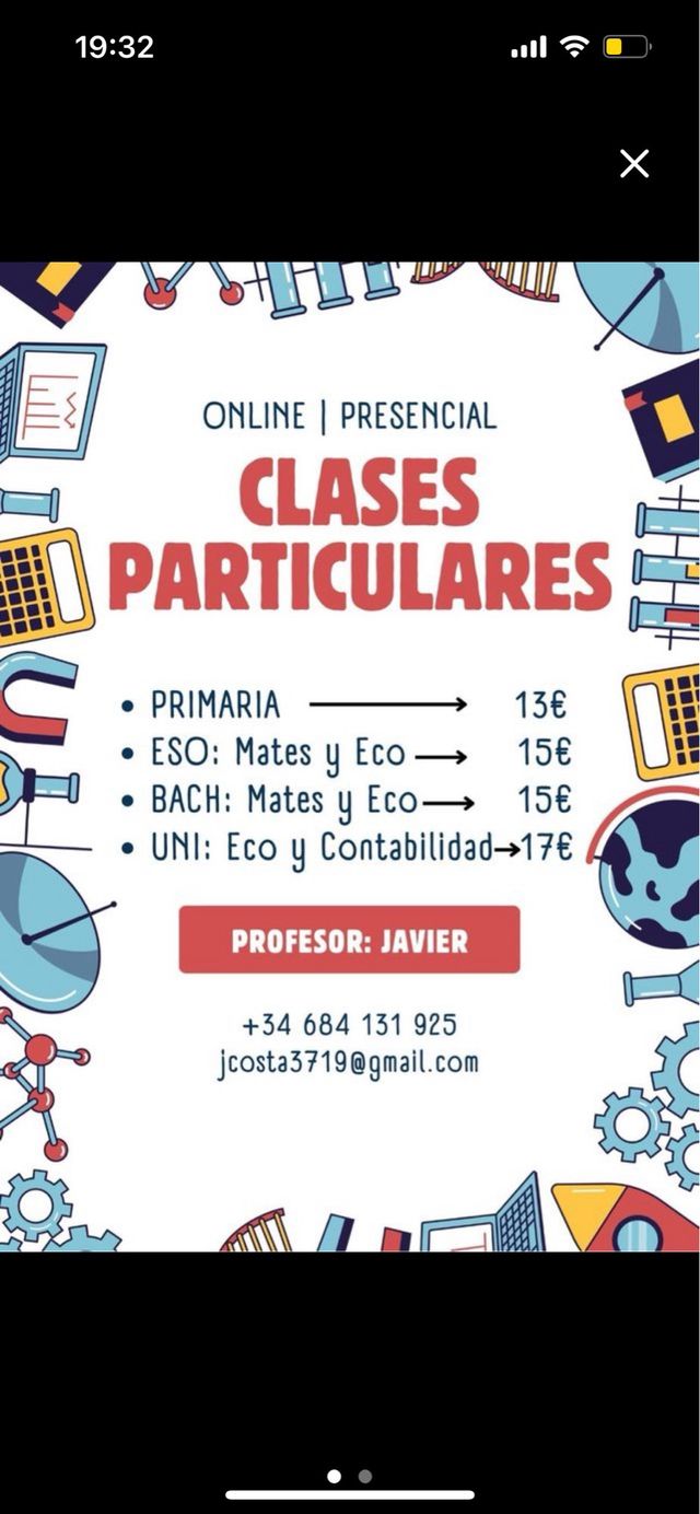Si están interesados contáctenme (+34 684131925) para acordar los horarios y el lugar, puede ser online o presencial, dependiendo de la lejanía se cobrará un suplemento por transporte, toda la información está en el CV.