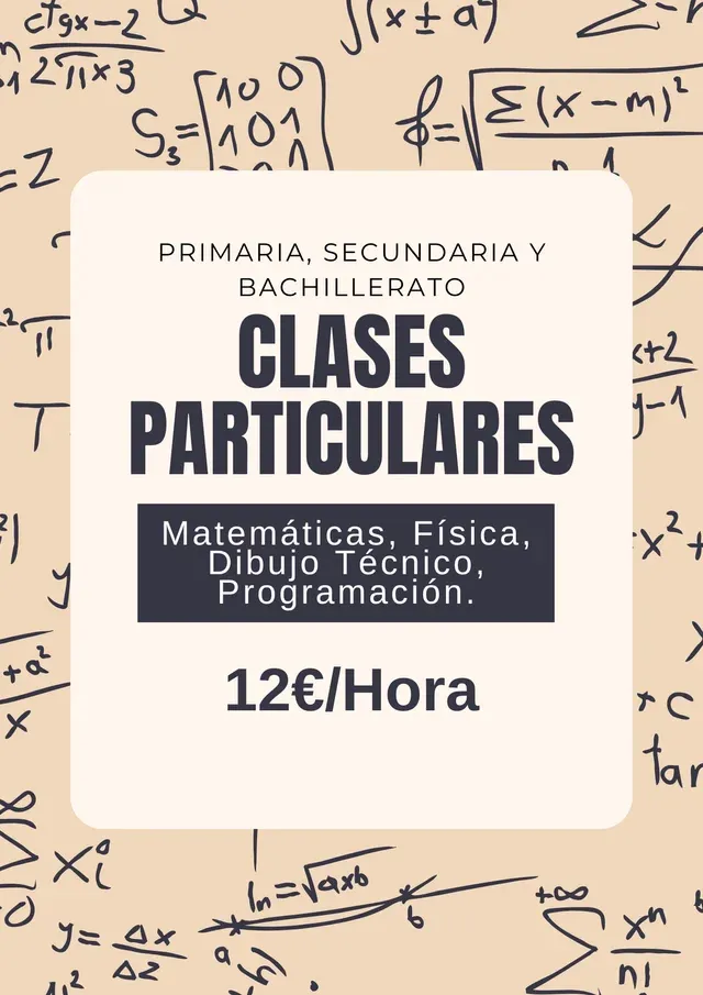 Ofrezco clases personalizadas, adaptadas al ritmo y necesidades de cada estudiante, con el objetivo de entender de verdad los conceptos y ganar confianza en la asignatura.