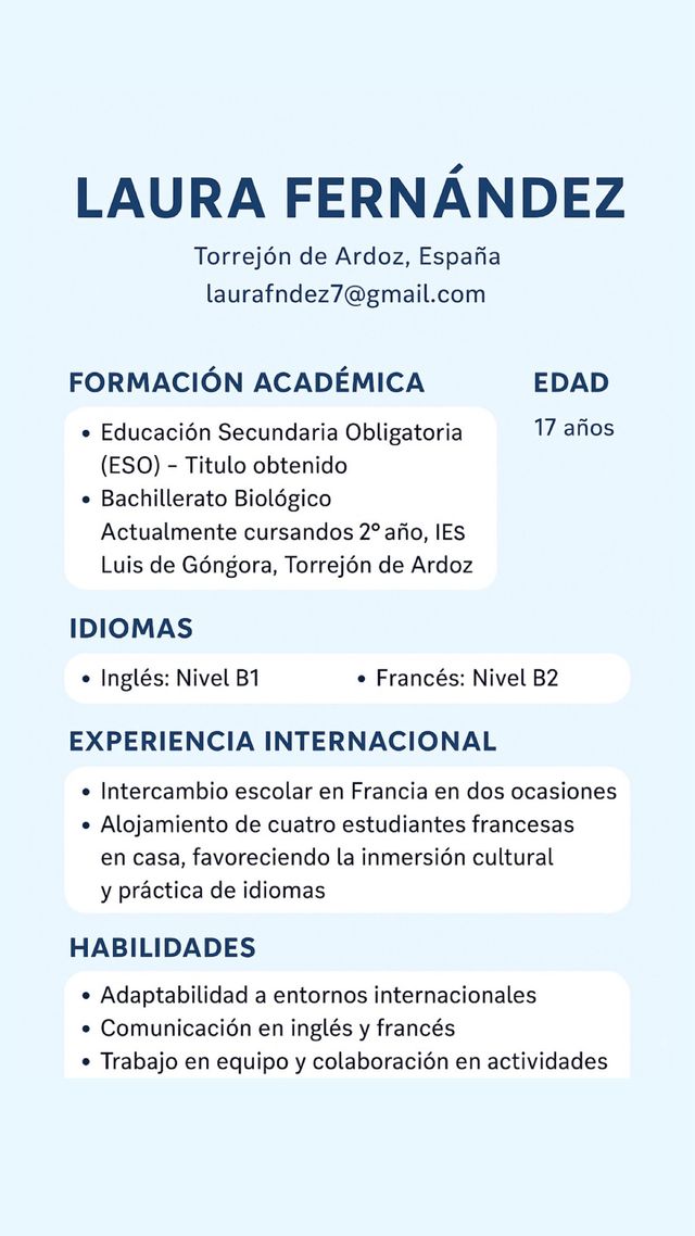 Detalles del productoHola, me llamo Laura, tengo 17 años y vivo en Torrejón de Ardoz (Madrid). Tengo un nivel B2 de francés y puedo ayudar en esta asignatura a estudiantes de primaria y 1 y 2 ESO. Experiencia con intercambios a Francia y con estudiantes franceses conviviendo conmigo.