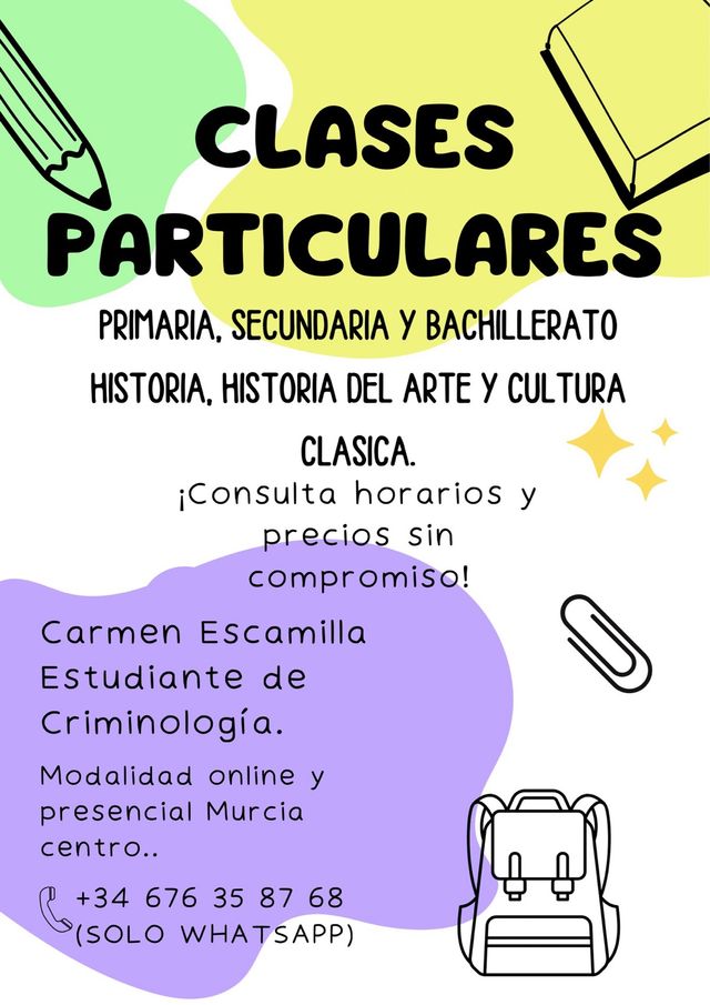 Detalles del productoCLASES PARTICULARES DE HISTORIA, HISTORIA DEL ARTE Y CULTURA CLÁSICA 🎨🏛️
