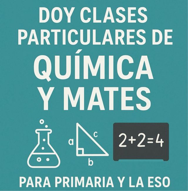 Detalles del productoSoy estudiante de segundo de carrera y ofrezco clases particulares de matemáticas y química para estudiantes de primaria y ESO. Aunque no tengo formación oficial como profesora, tengo experiencia en ayudar a compañeros con buenos resultados; ademas, de sacar muy buenas notas en estas asignaturas. Las clases serian presenciales (Elche, perferiblemente en la zona de altabix)