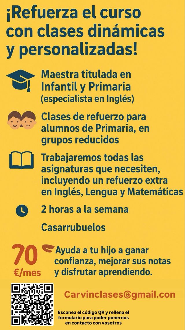 👧👦 Clases de refuerzo para alumnos de Primaria (hasta 2° ESO) en grupos reducidos