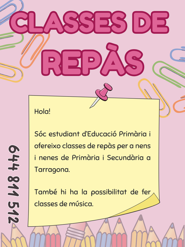 Me llamo Núria y soy estudiante de Educación Primaria. Ofrezco clases de repaso para niños y niñas de Primaria y Secundaria a Tarragona.
