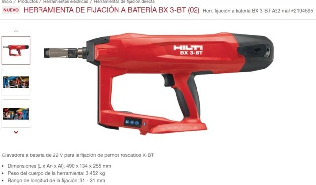 Detalles del productoClavadora Hilti a bateria