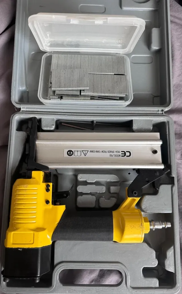 Detalles del productoClavadora neumática de alta calidad, ideal para trabajos profesionales. Incluye caja y clavos.