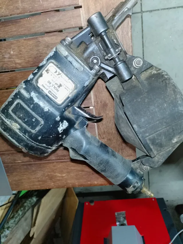 Detalles del productoClavadora neumática Stanley modelo Roll 60, diseñada para trabajos con palets. Es una herramienta robusta y fiable.