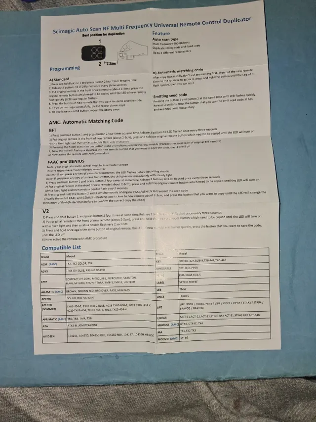 Multjfrecuencia 280mhz ,433 mhz hastq 815mhz. 4 mandos en 1. Valido para los modelos de mando que se ve en laa fotos.
