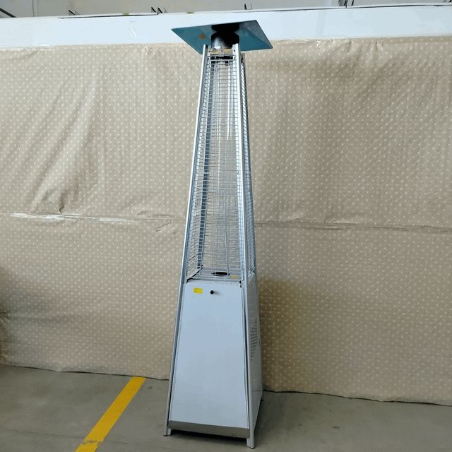 🚧 Anotaciones: Acero. Color Plata. Tiene ruedas. Llama regulable. Encendido piezoeléctrico. Tubo de cristal templado de 10x125 cm. Reflector con un diámetro de 81 cm. Potencia: 13 kW. Peso: 23 kg. Gas Butano.