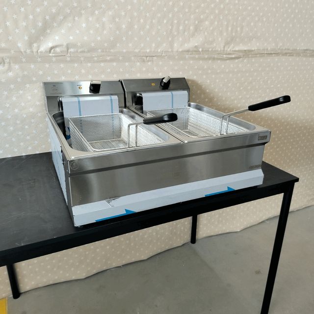 Freidora Industrial Eléctrica Doble de 10+10 Litros.