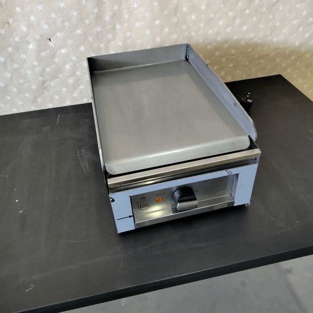 🚧 Anotaciones: Acero Inoxidable. Placa Lisa de 4 mm. Dimensiones de la Placa: 29x41 cm. Depósito recoge-grasa delantero. Temperatura: 50 a 300 °C. Fusible para evitar el sobrecalentamiento. Peso: 9 kg. Potencia: 2,7 kw.