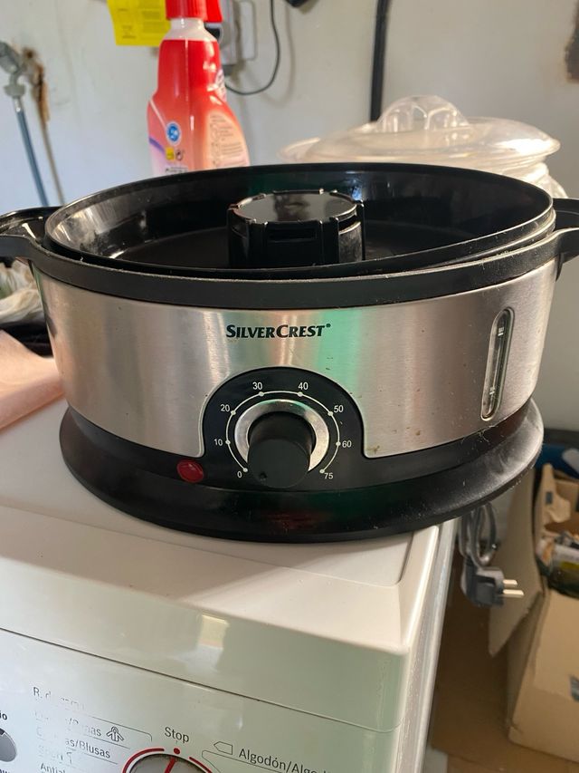 Detalles del productoCocedora electrica del Lidl, tiene años pero no mucho uso, guardada, se conserva bien. Para verdurad y cualquier cosa. el bol blnaco que se ve es para cocer ahi el arroz