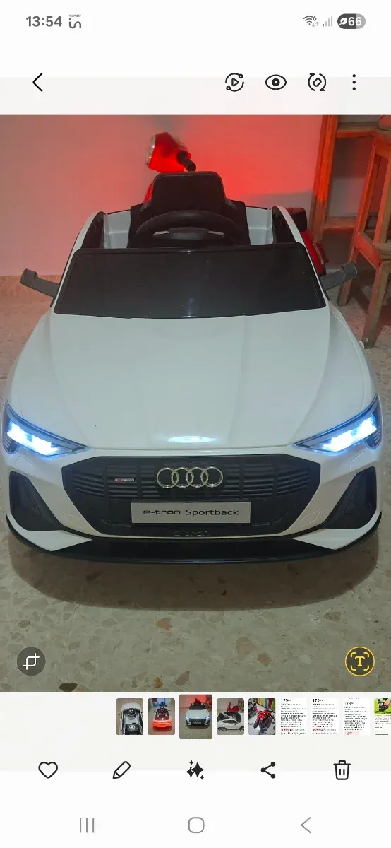 Coche eléctrico infantil con diseño deportivo. - Modelo Audi e-tron Sportback. - Color blanco. - Luces delanteras LED.