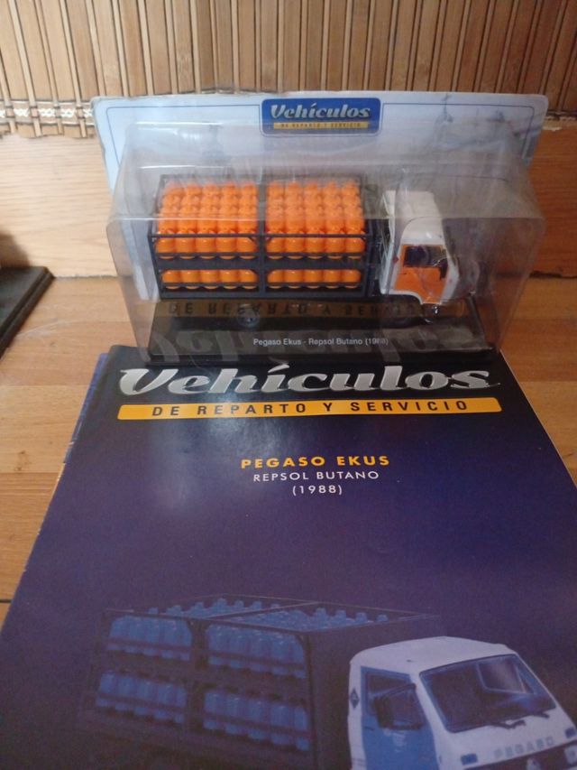 Réplica de coche de colección Pegaso Ekus de Repsol Butano de 1988. - Modelo a escala. - Carga de botellas de butano naranjas.