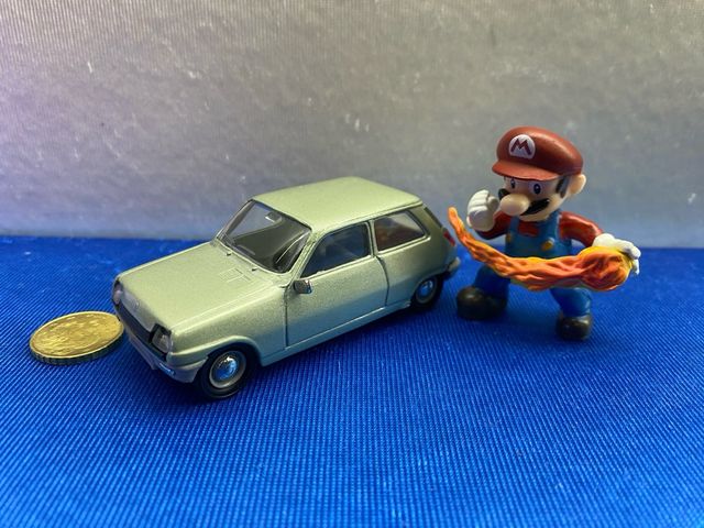 Minifigura detallada de un Renault 5. - Réplica a escala del icónico coche. - Color verde metalizado.