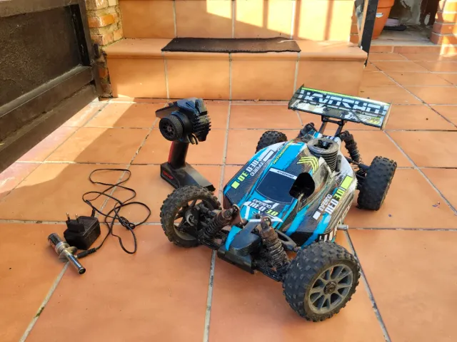Se vende por falta de uso lleva parado un año imedio al mando le falta la tapadera de las pilas por lo demás está todo. Aviso el coche lleva parado un año imedio hay que revisarlo. Tiene el engranaje de transmisión cambiqdo por uno de acero original precio algo negociable.
