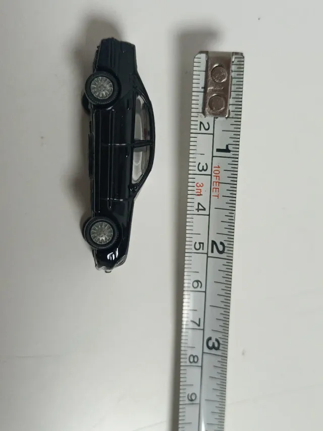 Coche a escala de color negro. - Diseño detallado. - Ruedas plateadas.