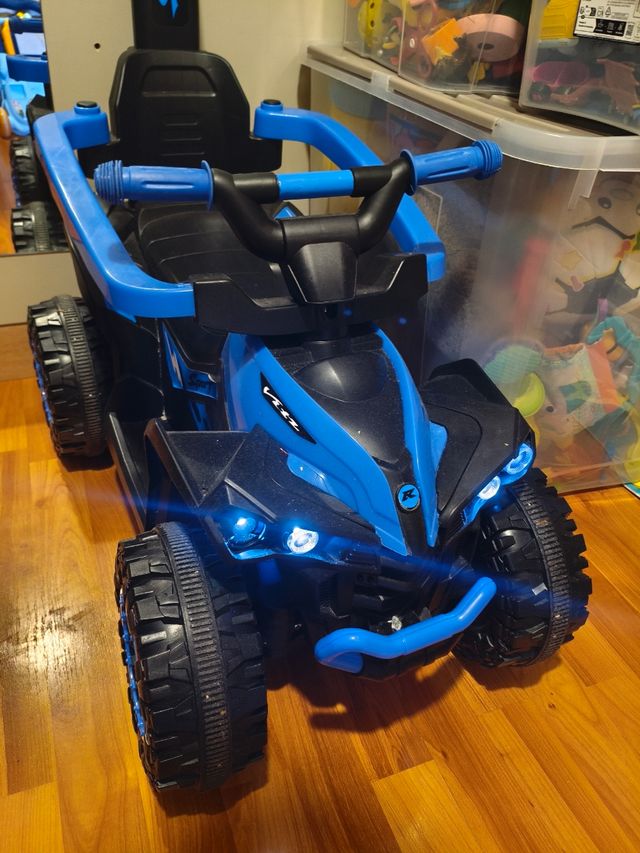Detalles del productoMoto 4 ruedas con sonido para niños, en color azul. poco uso..como nuevo