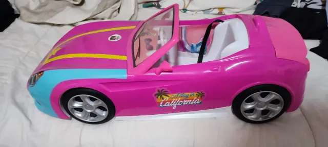 Coche descapotable de Nancy, ideal para jugar. - Color rosa y azul. - Diseño deportivo. - Adhesivo A day in California en el lateral. - Ruedas plateadas.