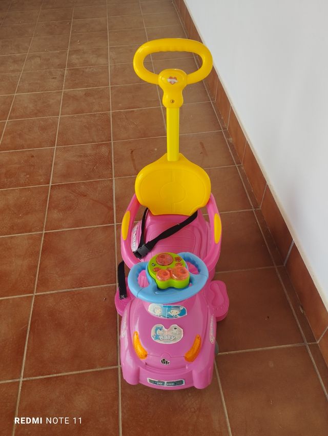 Detalles del productoCoche infantil rosa y amarillo en buen estado. Ideal para que los más pequeños se diviertan.