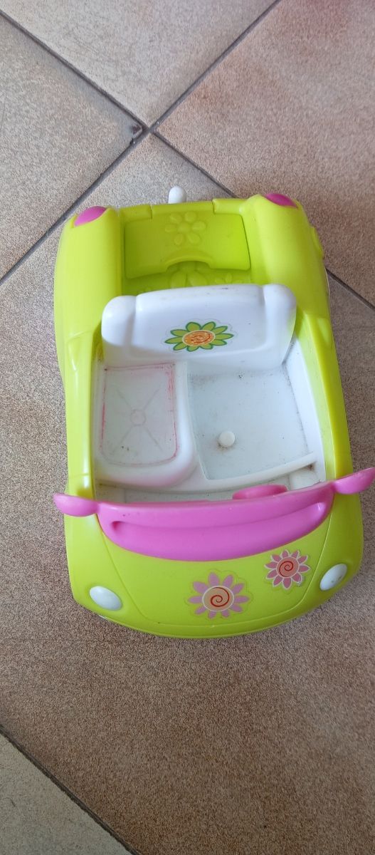 Detalles del productoCoche de juguete para niñ@s, ideal para juegos de imitación. Es de color verde y rosa, con detalles florales.