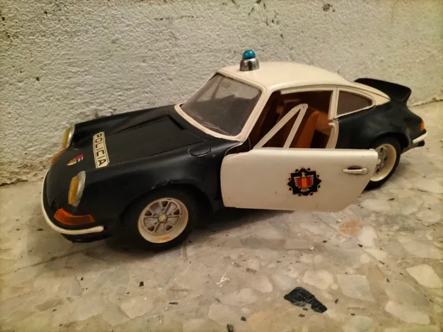 Detalles del productoCoche de juguete antiguo de la marca Sanchís, modelo de policía, es un Porsche, 35 cm de largo, funciona a fricción, que funciona sin problema, buen estado general, solo falta la tapa de cristal en el maletero.