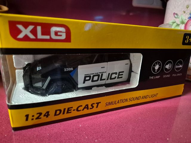 Detalles del productoSe vende coche de juguete Tesla Cybertruck de policía, a escala 1:24. Es un modelo de fundición a presión con luces y sonidos.
