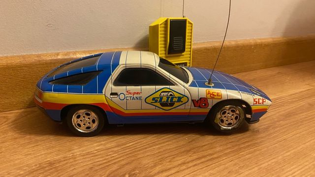 Coche de radiocontrol (RC) antiguo, con la carrocería inspirada en un Porsche 928. Desconozco si funciona.