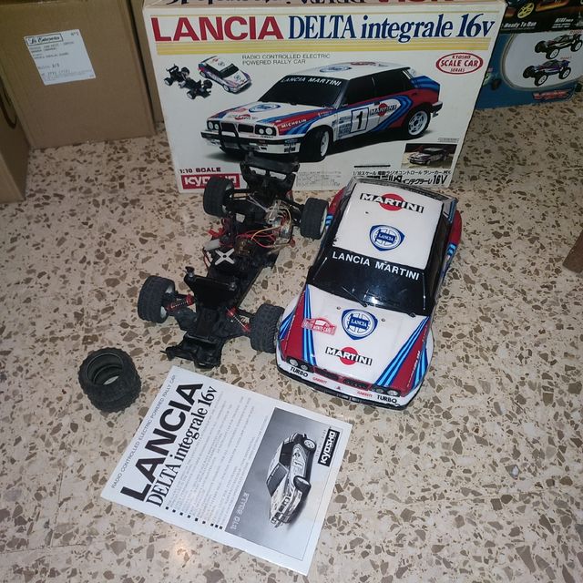 Detalles del productoCoche radiocontrol eléctrico Kyosho Lancia Delta Integrale 16v a escala 1:10 . Réplica detallada del icónico coche de rally.