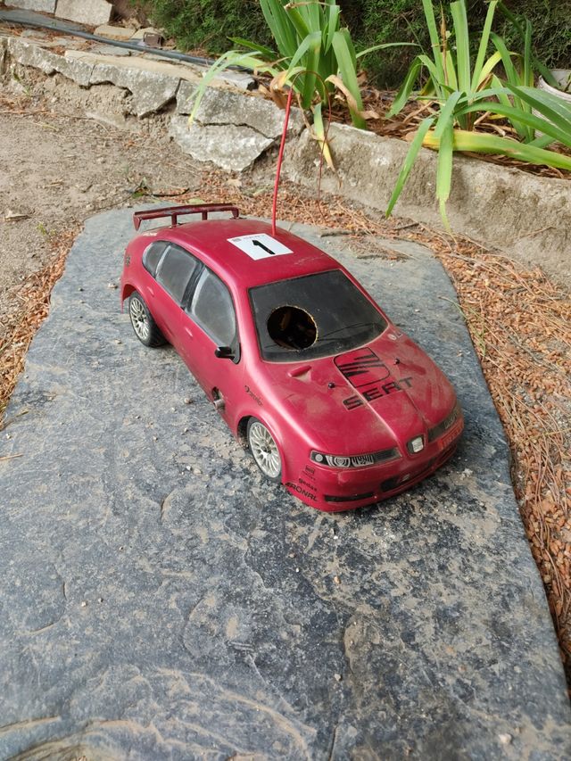 Coche de radiocontrol Seat León 4×4 WRC, usado. Tiene algunos desperfectos estéticos, como se puede apreciar en las fotos.