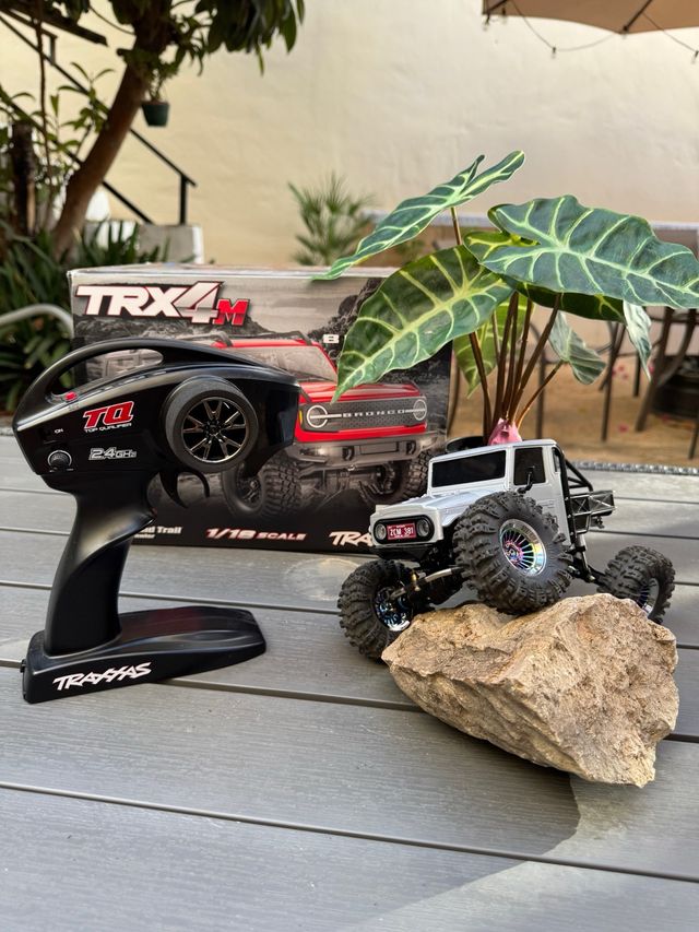 Detalles del productoCoche radiocontrolado TRX4M con varias mejoras instaladas. Listo para la acción.