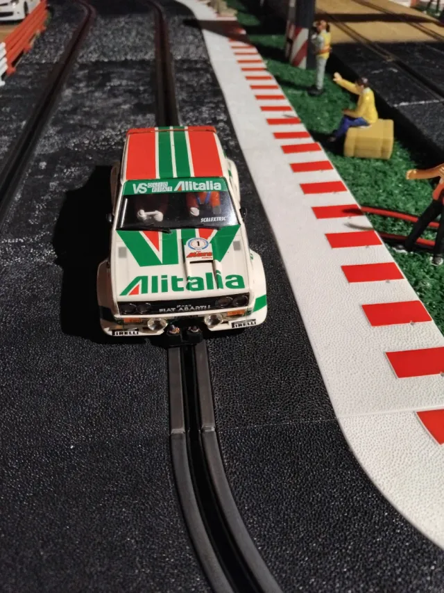 Coche de Scalextric con decoración Alitalia. - Réplica detallada de coche de competición. - Diseño clásico de los años 80. - Ideal para coleccionistas y aficionados.
