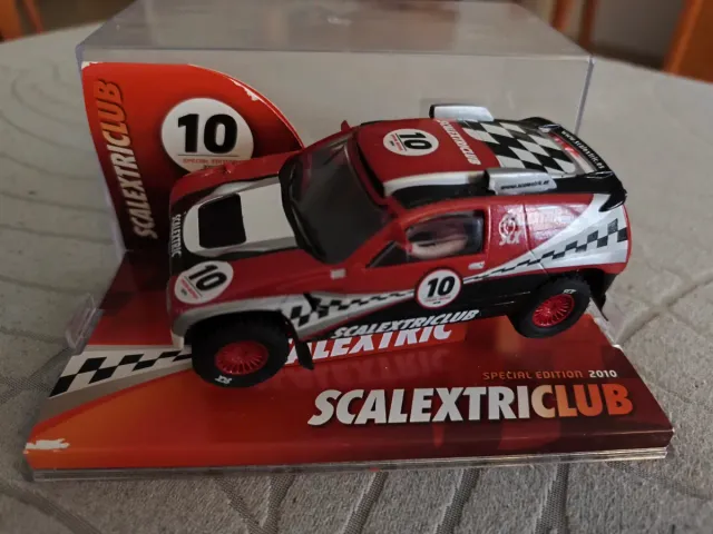 Detalles del productoCoche de colección Scalextric Club, edición especial del año 2010. Presenta un diseño deportivo en rojo, blanco y negro con detalles a cuadros y el número 10.