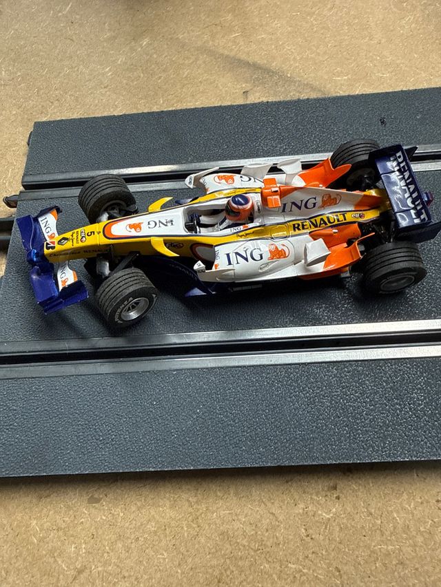 Detalles del productoCoche de Scalextric de Fórmula 1 del equipo Renault. Modelo analógico.