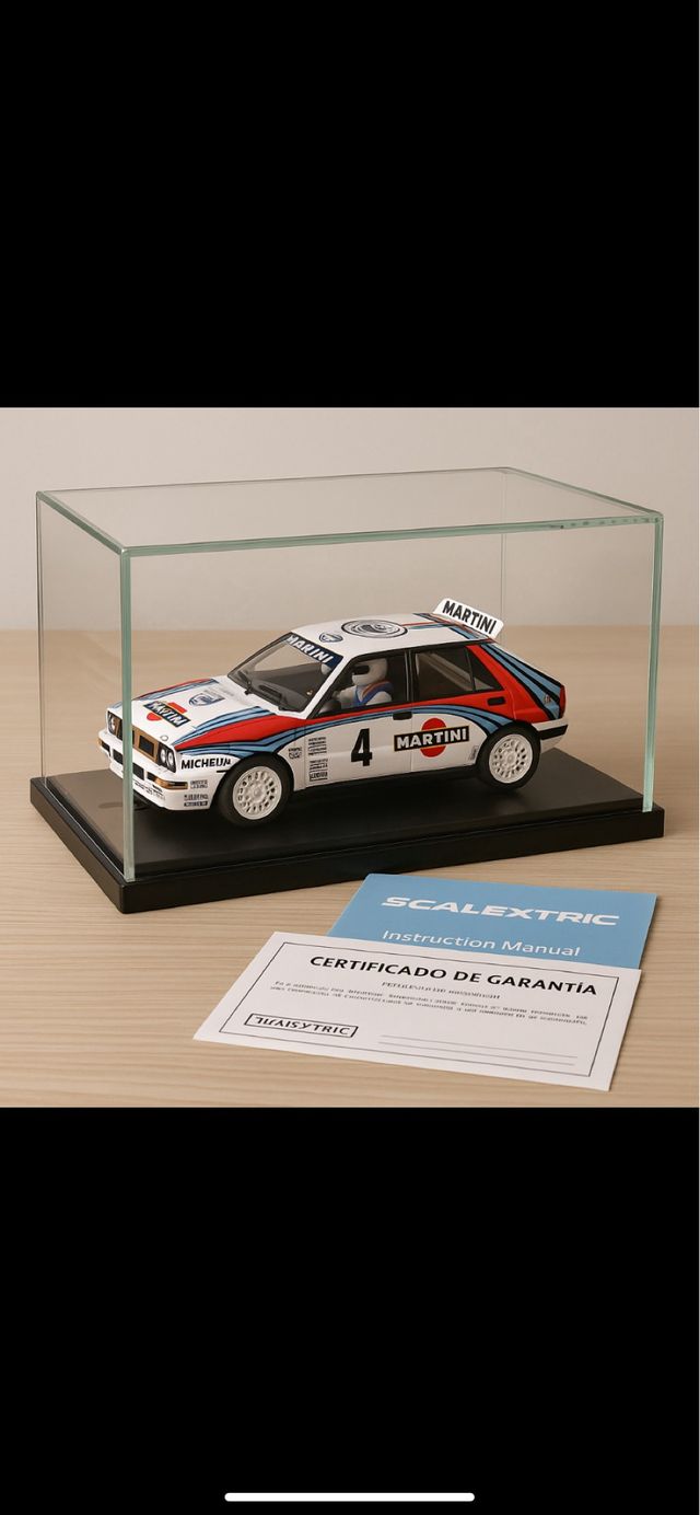 Detalles del productoRéplica del icónico Lancia Delta Martini de Scalextric, listo para exhibir o coleccionar.