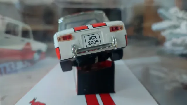 Coche de colección Scalextric. - Modelo SCX 2009. - Diseño blanco con detalles en rojo. - Referencia 6372