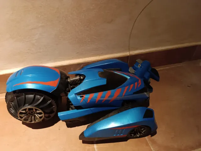 Coche teledirigido Raptor de color azul con detalles rojos - Diseño futurista. - Ruedas todoterreno.