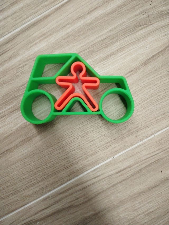 Material de silicona blandito y suave sin bpa. - Diseño de coche con figura humana. - Color verde y naranja.
