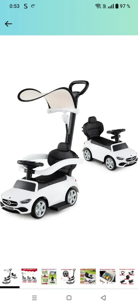 Detalles del productoCochecito para bebé con diseño inspirado en Mercedes-Benz, en color blanco.