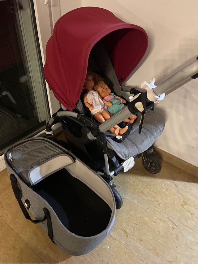 Cochecito Bugaboo Bee en color gris. - Capota extensible. - Incluye capazo. - Ruedas todoterreno.