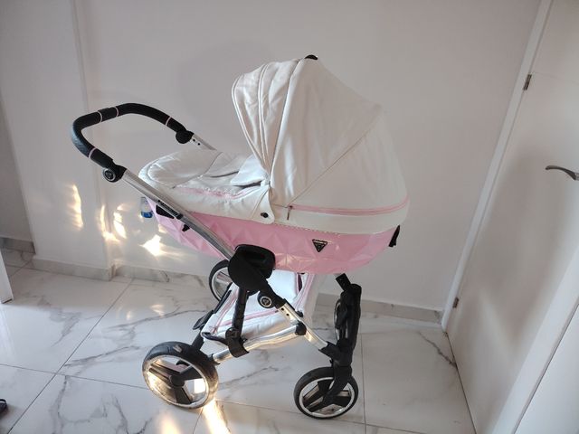 Cochecito junama de bebé rosa y blanco