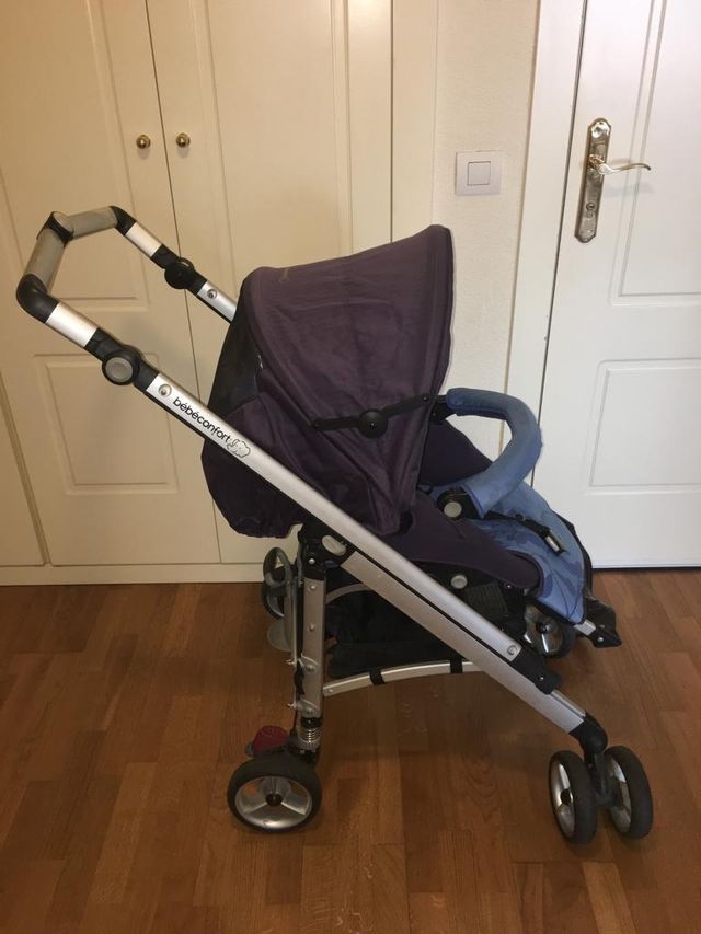 Cochecito trío BEBECONFORT LOOLA azul. Incluye silla de paseo, maxicosi (grupo 0) y cuco (capazo).Fácil manejo, se monta y desmonta con facilidad.