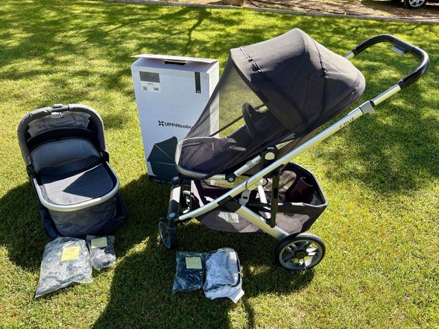 Detalles del productoCochecito UPPAbaby Cruz v2 en color gris. Incluye capazo. Accesorios como mosquitera y plástico lluvia.