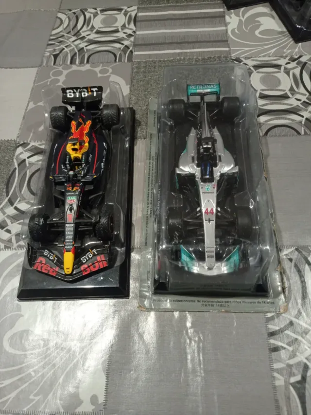 Dos coches de Fórmula 1 de colección. - Coche Red Bull Racing con patrocinio BYBT. - Coche Mercedes-AMG Petronas con dorsal 44.