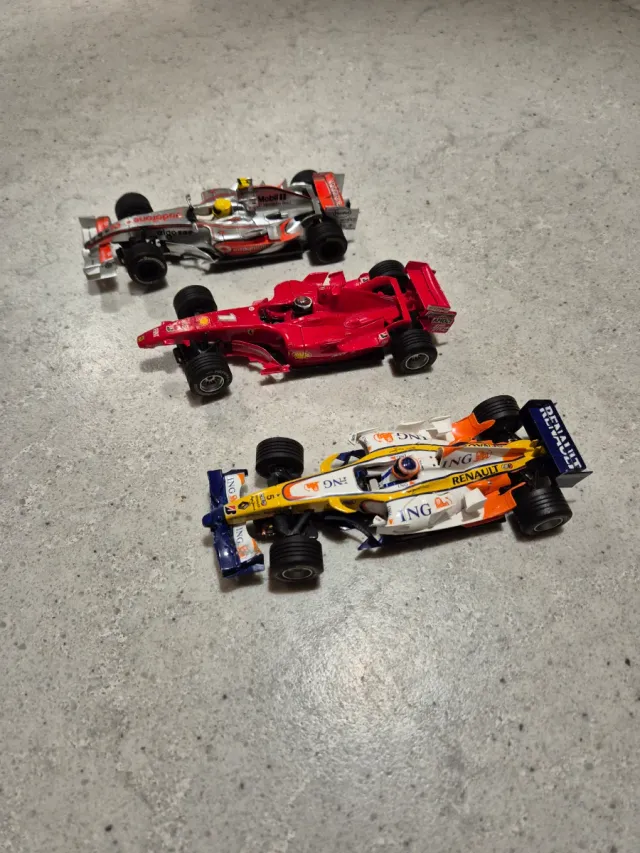 Detalles del producto3 coches de Fórmula 1 Scalextric en formato digital. Ideales para coleccionistas o recambios.