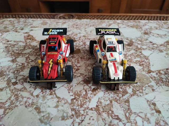 - Dos coches de carreras a escala.